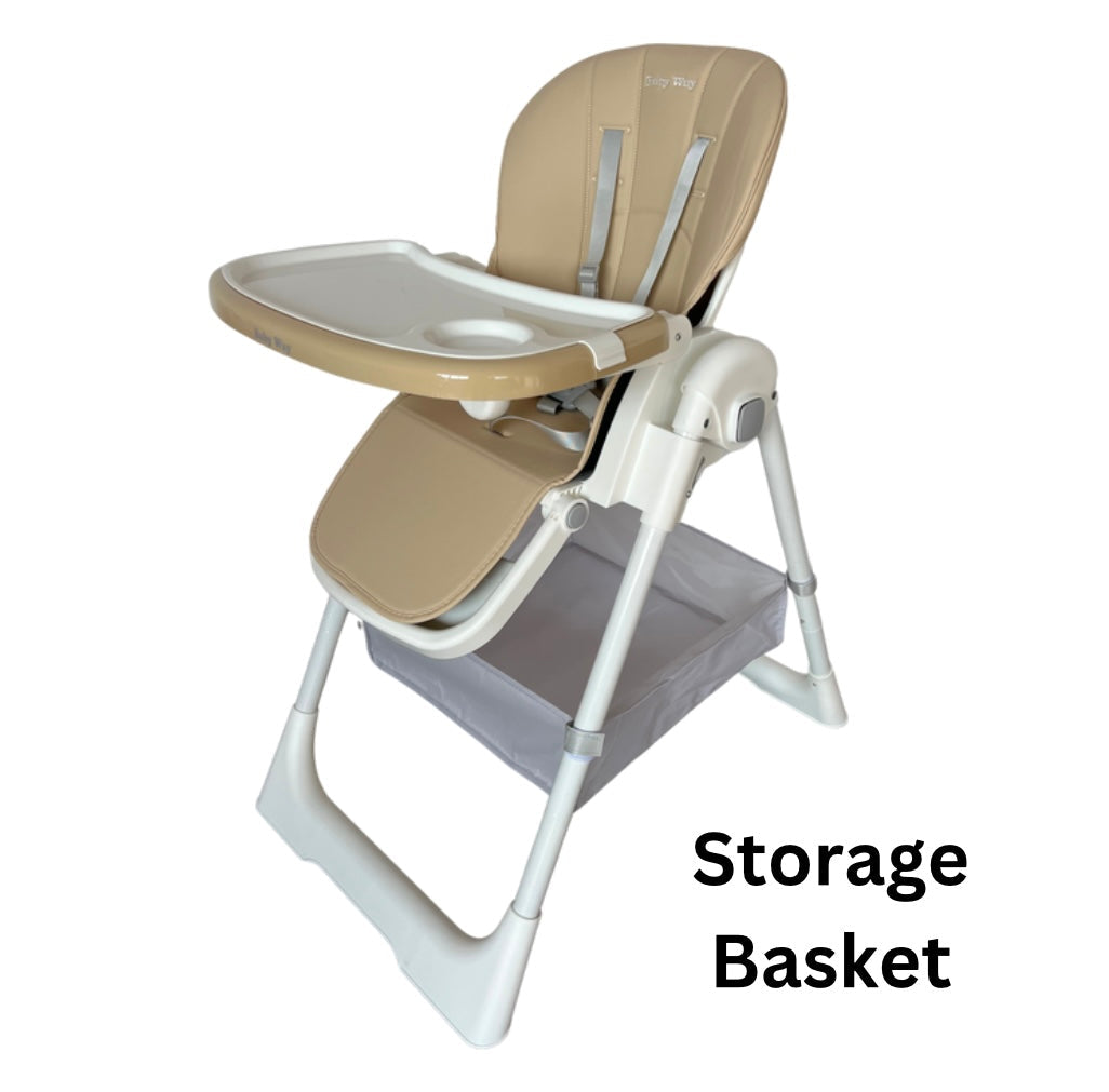 Elevate Adjustable and Folding High Chair with Locking Wheels & Storage Basket - BEIGE